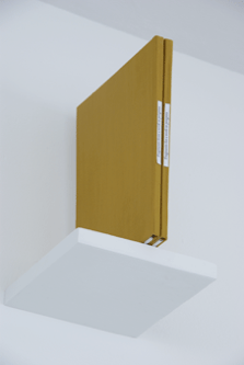 Displayed on shelf at height above one’s head. The titles glued on book covers must remain readable.