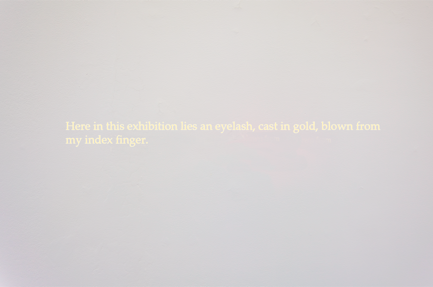 Here in this exhibition lies an eyelash, cast in gold, blown from my index finger.