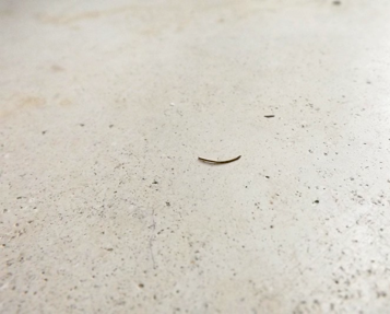 An eyelash, which is commonly associated with dust, is turned into a precious metal object, before being cast back to its dust like state. For over a year, the artist has been collecting her own eyelashes and turning them from dust to gold. A single golden eyelash is then blown into the exhibition space, and left to kick around on the dusty floor.