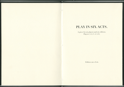 Play in Six Acts. is a book/ script/ play/ score/ (sound) object.