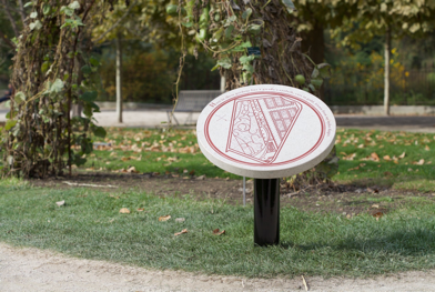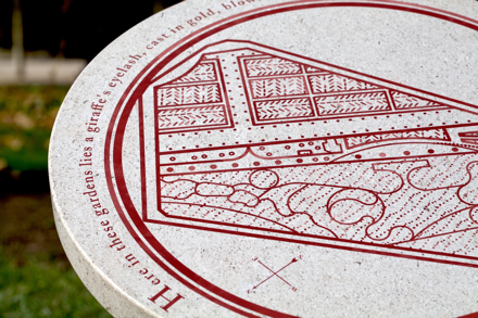 A personal fictitious map remains for visitors to interact with, evoking possible trajectories of where this golden eyelash might lie hidden. The map is engraved into stone and is an amalgamation of several different maps of le Jardin des Plantes, drawn from different periods in history and weaved together at different scales. This map or trail marker - receptive to movement, repositioning and spinning - is like a compass without fixed position or destination.