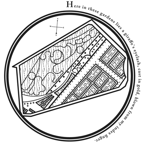 The eyelash, trailing somewhere within the gardens, becomes like a fossil, accentuating the long history and purpose these gardens have previously served.